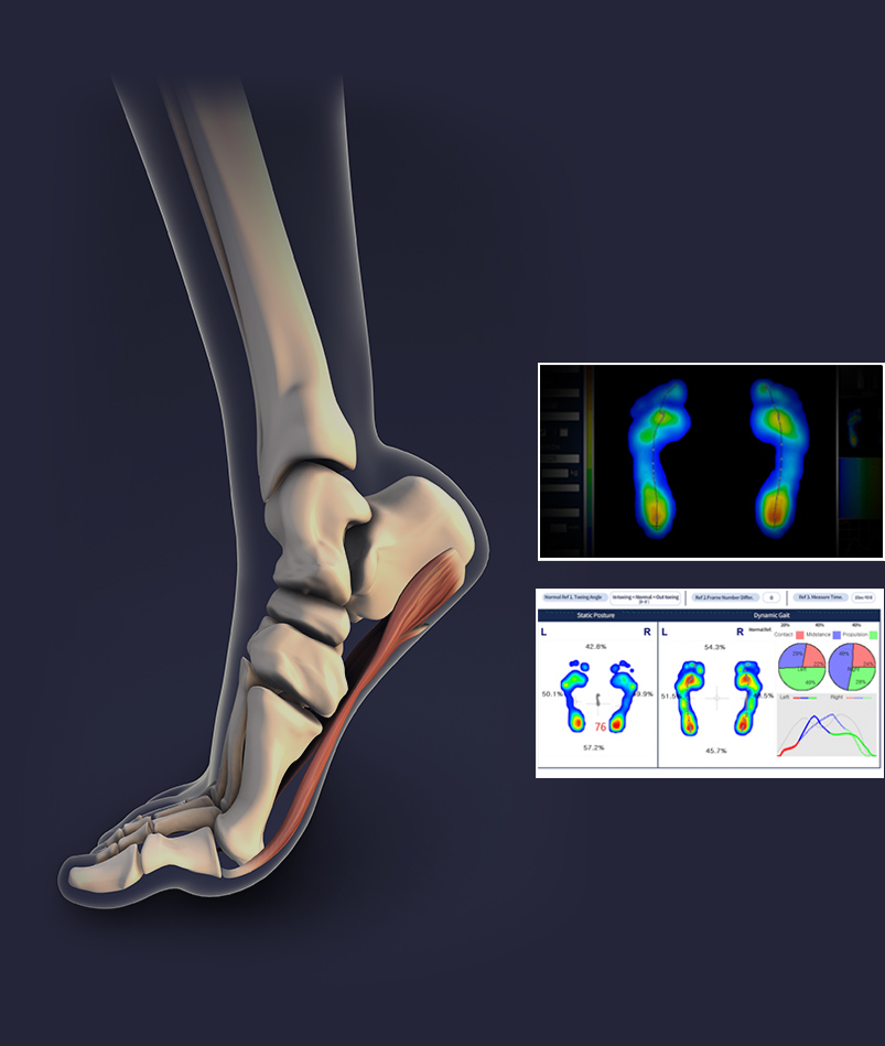 X-ray 및 족저압 검사를 통해 척추의 균형, 발의 압력 분포,
